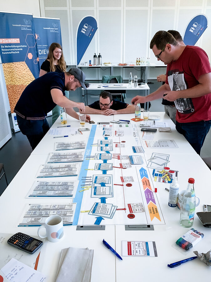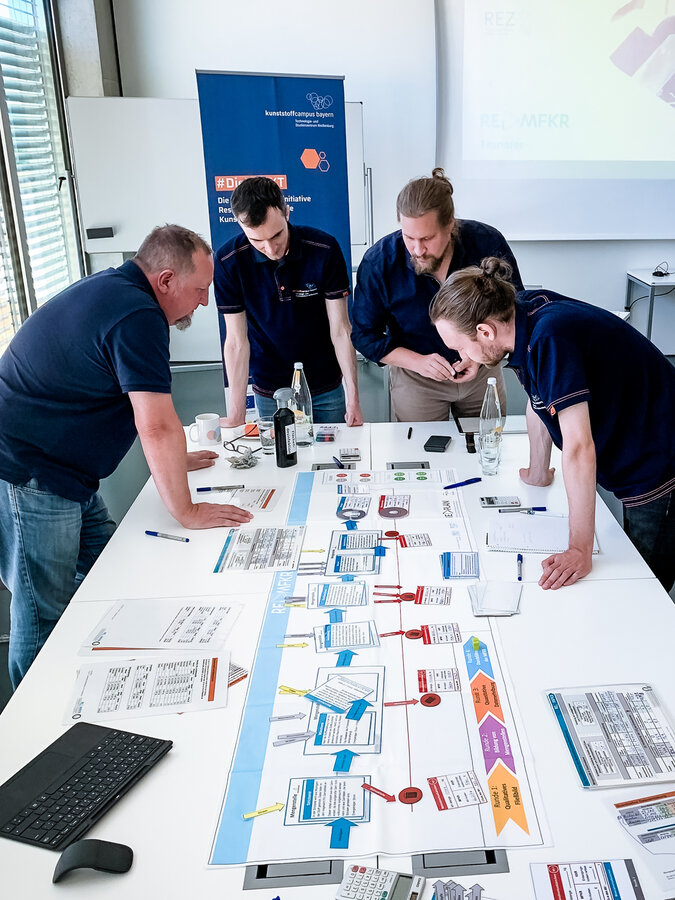 Das Ressourceneffizienz-Zentrum Bayern (REZ) unterstützt Unternehmen mit einem Planspiel zur Materialflusskostenrechnung (MFKR) bei der Identifikation von Materialverlusten und CO2 Emission in der Produktion.