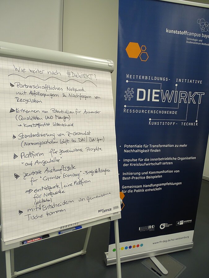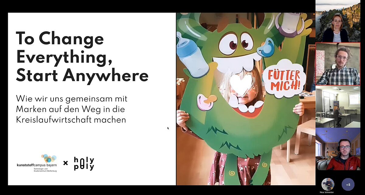 Als letzter Vortragender war Fridolin Pflüger an der Reihe. Auch er griff direkt wieder den Begriff „Pilotprojekte“ auf, welche als erfolgreiches Instrument der Transformation dienen kann. Bei diesen Projekten unterstützt HolyPoly aktiv als Full-Service Partner. Im Fokus dabei stehen der hochwertige Einsatz recycelter Kunststoffe und der Aufbau innovativer Recyclingprogramme (mechanisches Recycling). Anhand des Fallbeispiels #NUKTakeBack wurde der aktuell noch laufende Prozess von der Idee bis zur Umsetzung dargestellt. Das langfristige Ziel von NUK und HolyPoly ist es Produkte wie Schnuller, Babyflaschen oder Becher aus Rezyklat herzustellen. Erneut stand dabei zunächst das Überwinden von Hürden an erster Stelle. Um diese zu überwinden sollte man Schritt für Schritt vorgehen und sich dabei Zwischenziele setzen, die einen auf dem Weg zum Ziel voranbringen.