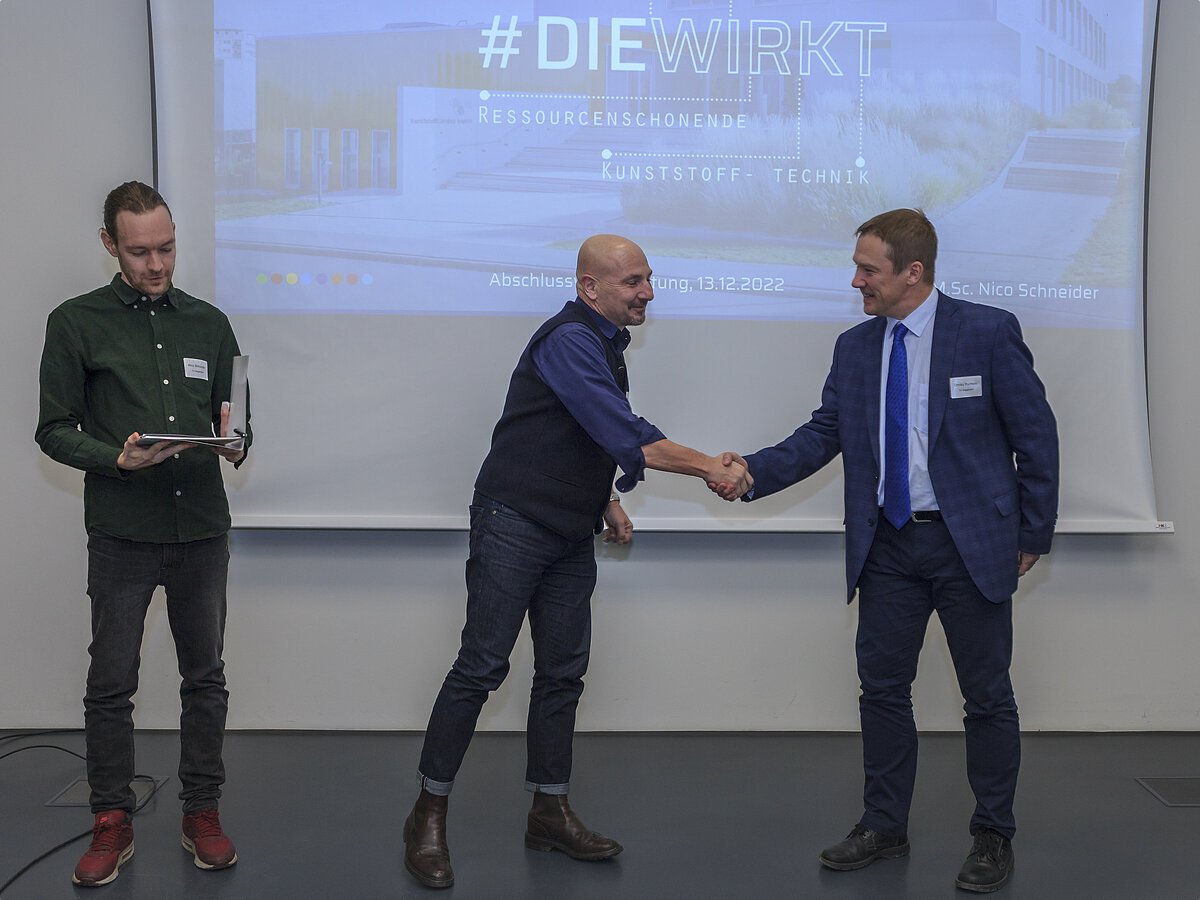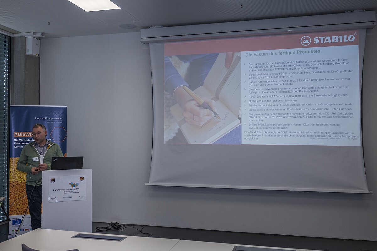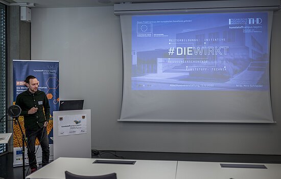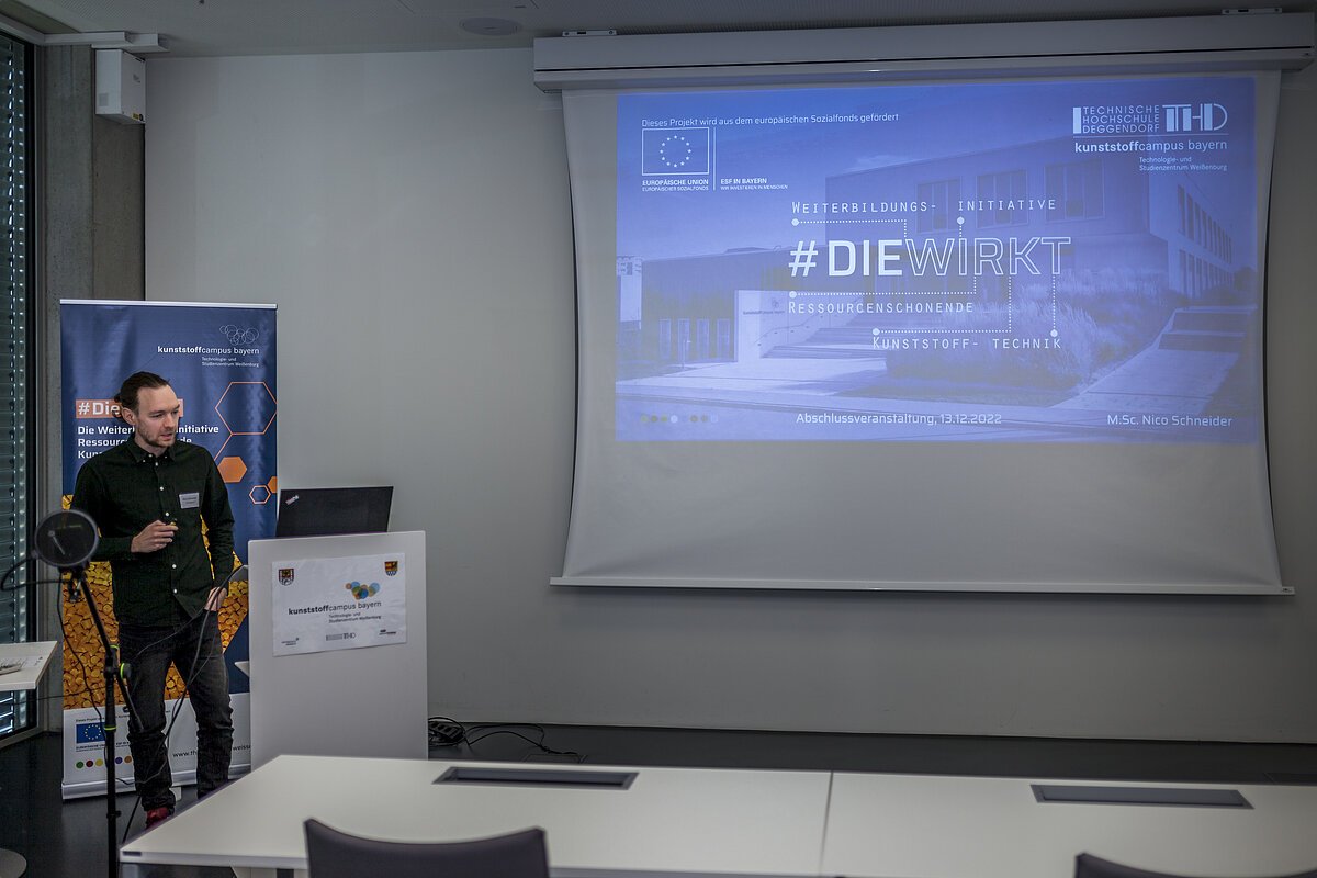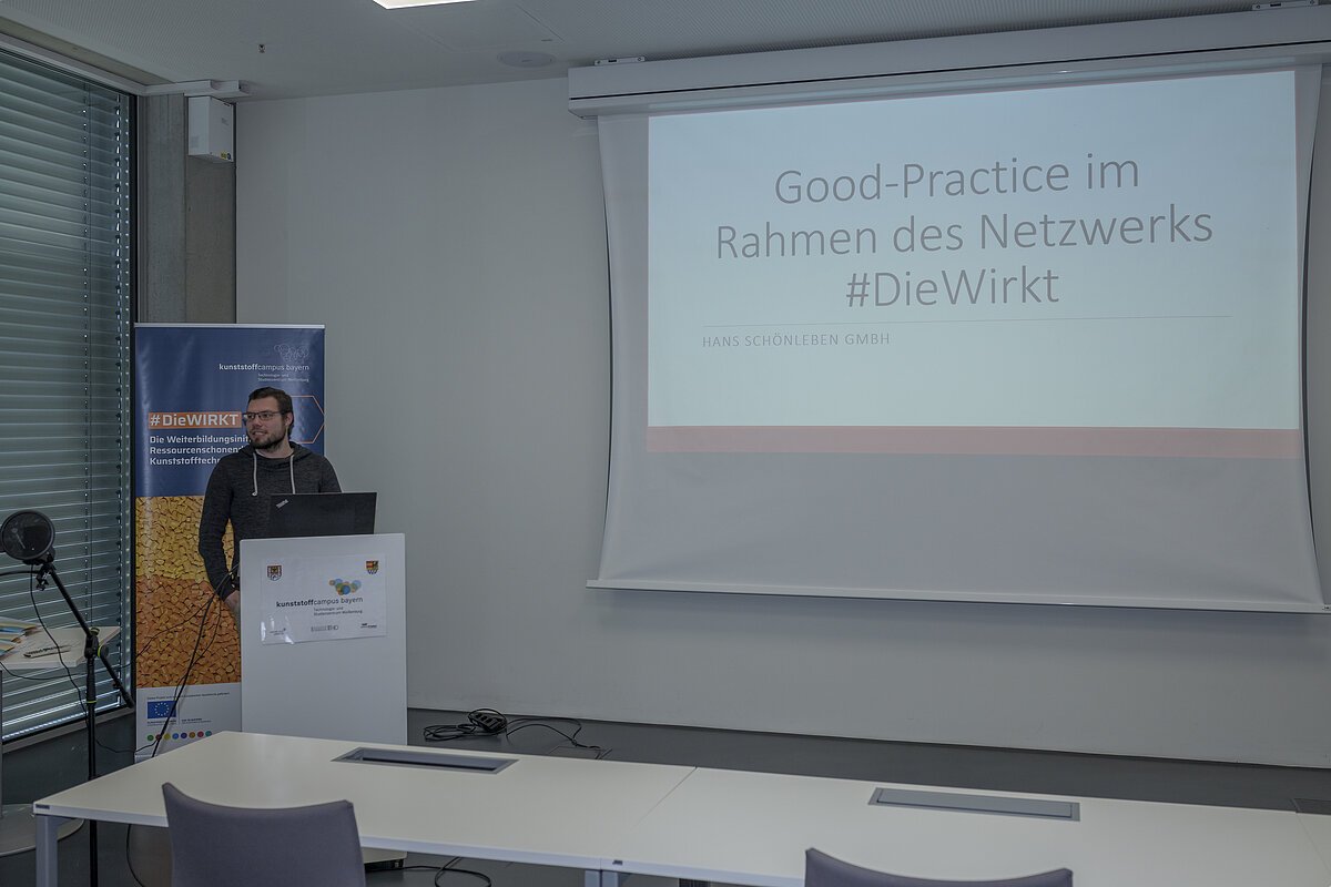 Mit der letzten Veranstaltung fand die Weiterbildungsinitiative #DieWirkt einen gebührenden Abschluss. Nach einleitenden Worten ergriff Michael Thews (Berichterstatter für den Bereich Kreislaufwirtschaft und Ressourcenschutz in der SPD-Bundestagsfraktion und Mitglied im Umweltausschuss) das Wort und berichtete über aktuelle Entwicklungen aus dem Bundestag zum Thema Kreislaufwirtschaft. Darüber hinaus gab er einen Rück- sowie Ausblick auf bereit Geleistetes sowie Pläne, welche noch umgesetzt werden sollen. Ein wichtiger Punkt war, dass für die Zukunft Unternehmen, welche nachhaltig / zirkulär Wirtschaften, belohnt werden sollen. Im Anschluss widmeten wir uns den Projektergebnissen (diese können auf der Hauptseite eingesehen werden) und die Teilnehmenden Lukas Kling (ALLOD Werkstoff GmbH & Co. KG), Dietmar Kahn (STABILO International GmbH), Andreas Gerstner (CG Tec Carbon und Glasfasertechnik GmbH) und Tobias Schönleben (Hans Schönleben GmbH) präsentierten im Laufe des Projekts entstandene Good-Practice-Beispiele. Abschließend erfolgte, zusammen mit der IHK Akademie Mittelfranken, die feierliche Anerkennung der Teilnehmenden sowie das Schlusswort von Prof. Dr. Dmitry Rychkov und Nico Schneider.