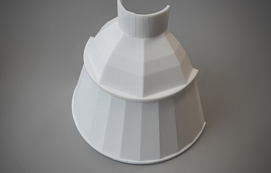 Für den Prototypenbau wurde ein Filament von dem eigencompoundierten Material hergestellt. Hierbei konnte die Erfahrung und Unterstützung des Pappenheimer Kunststoffmaschinenvertrieb (PKV) genutzt werden, um den geforderten konstanten Filamentdurchmesser von 1,75mm für das Fused Filament Fabrication (FFF) Verfahren zu realisieren. Bei der Herstellung der Prototypen lag die Herausforderung auf der Oberflächenrauigkeit der hergestellten Bauteile, damit anschließend eine optimale Haftung der 3D-Beschichtung erreicht werden kann.