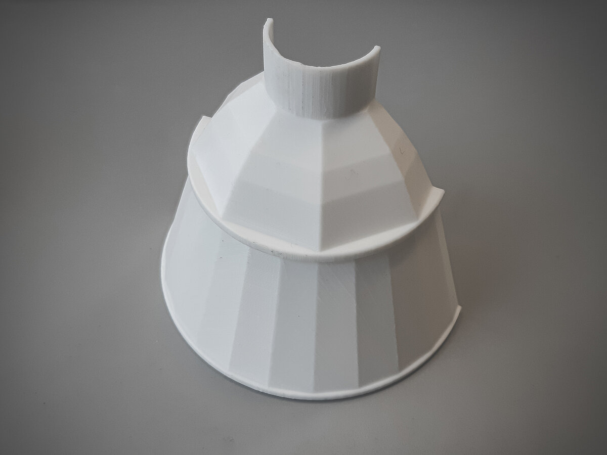 Die Schaltungsträger vieler LED-Lampen basieren derzeit auf einem 2D Layout, wie zum Beispiel die Retrofit LED Straßenlampe (siehe Abbildung) der Firma Dotlux GmbH im bayerischen Weißenburg. Zur Erzeugung von hohen Abstrahlungswinkel müssen mehrere Leiterplatten in aufwendigen Montageschritten auf einem Sockel kreisförmig ausgerichtet werden. Das Schaltungslayout sowie die dazugehörigen Bauelemente (LEDs, Widerstände, Dioden, usw.) werden hierzu jeweils auf separate 2D-Leiterplatten aufgebracht. Zur Ableitung der entstehenden Wärme müssen aktuell die einzelnen Leiterplatten mithilfe von Wärmeleitpaste auf einen zentralen Kühlkörper montiert werden. Der Herstellungsprozess der benötigten 2D Leiterplatten ist aufgrund des Einsatzes von Ätzchemie nicht umweltfreundlich zudem ist der gesamte Montageprozess der Lampen insgesamt zeitaufwendig.