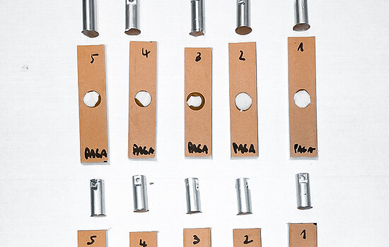 Für den späteren Einsatz der Lampenkörper in Beleuchtungsanlagen muss die Haftfestigkeit der Beschichtung über den Produktlebenszyklus gewährleistet sein. Zur Validierung wurden Probekörper verschiedenen Prüfungen unterzogen: